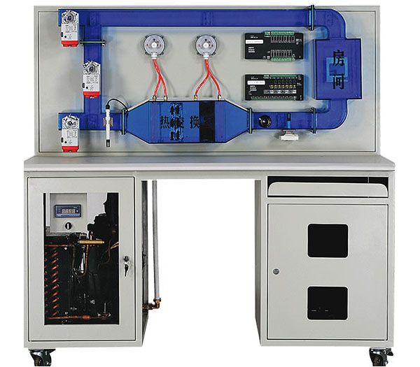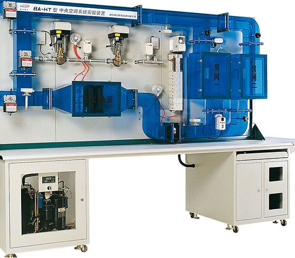 This system embraces the main control function of refrigeration unit in the central air conditioning system and air handling units. It adopts the idea of industrialization design, with the main sensors, actuators produced by Honeywell Company, represents the content of each section of the actual system. Transparent organic glass design is used for mechanical structure of the system, and students can be clear about internal structure at a glance.