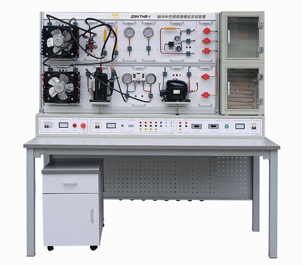 裝置上安裝有冰箱模擬系統(tǒng)和空調(diào)模擬系統(tǒng),可在此裝置上練習(xí)管路制作和安裝,電路安裝,系統(tǒng)找漏、抽空、添加制冷劑等??蓪?duì)電冰箱和空調(diào)器自控元件、微電腦控制系統(tǒng)進(jìn)行人為的故障的設(shè)定、故障的診斷與排除操作;對(duì)制冷維修中常用的各種工具進(jìn)行認(rèn)知(萬用表、擴(kuò)管器、管刀、改錐、克絲鉗、棘輪扳手、充氣管、接頭、扳手、遙控器)和掌握使用方法。